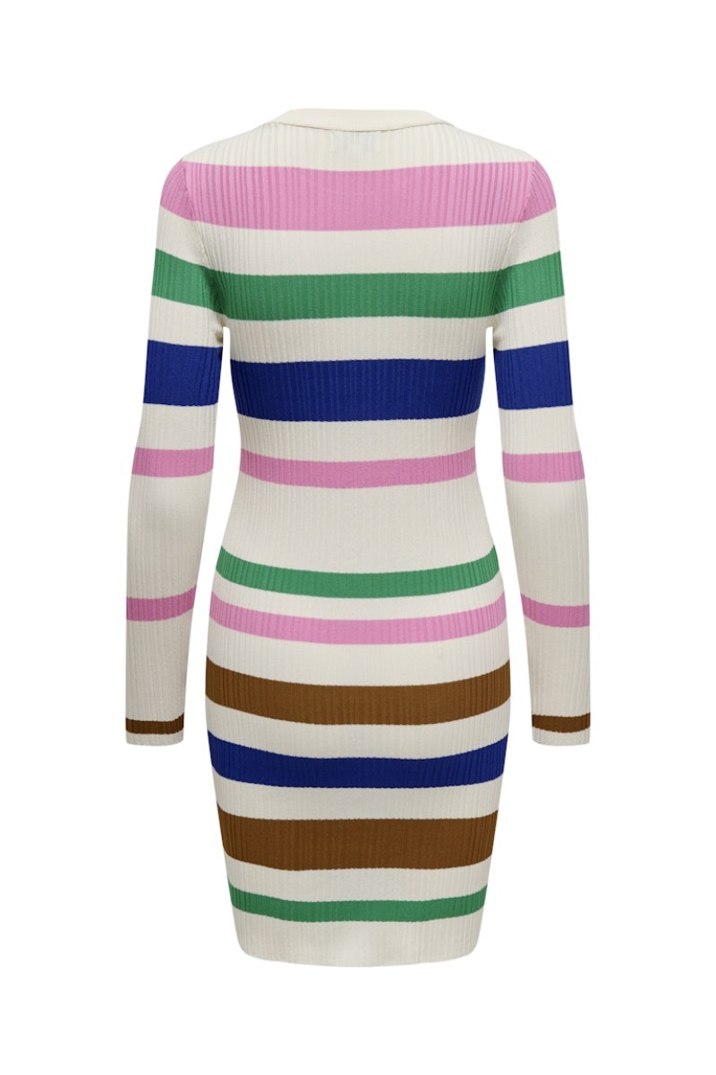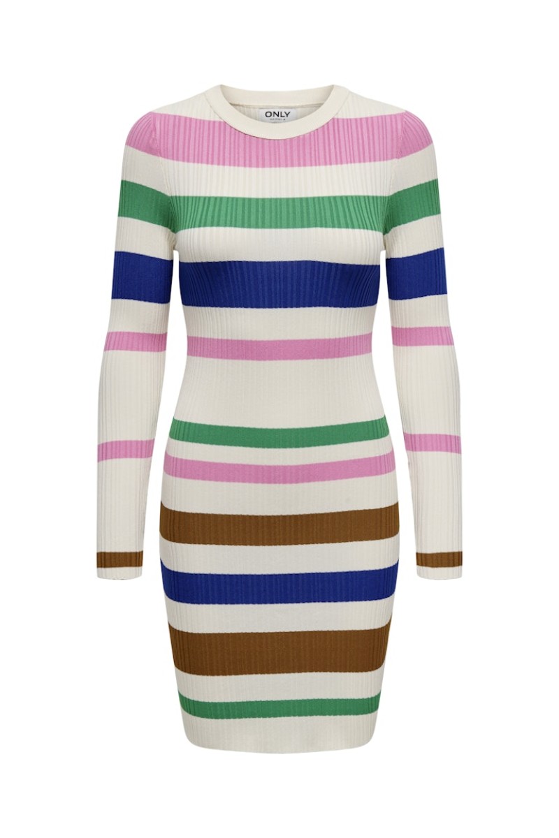 Rochie Only Onlsandri O-Neck Birch Stripes Begonia Pink/Green Bee/Dazzling Blue