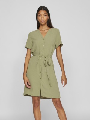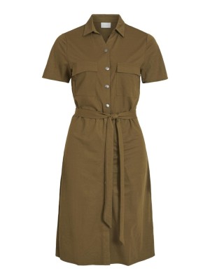 Dress Vila Vimodala V-Neck S/L Midi Oil Green